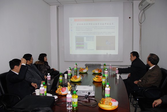 参观结束后,在六号教学楼四楼会议室,赵副部长听取了王涌天教授的汇报。王涌天教授介绍了近年来我校在国家重点基础研究发展规划(973)项目、国家高技术研究发展计划(863)项目、国家自然科学基金项目和国防预先研究项目的支持下在复杂光学系统设计研制、虚拟现实系统和增强现实系统关键技术等方面的研究成果。