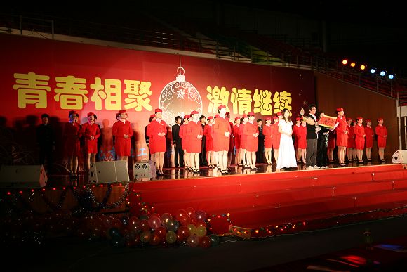 此场元旦晚会的主题是“青春相聚,激情继续”,整场晚会浑然一体,不但让激情在这个严冬的夜晚更好、更美的绽放开来。体育馆门口处的08级空乘服务与管理专业的学生迎宾队伍让人如沐春风,也给大家展示了我校继续教育学院学生良好的精神面貌。一曲《把一切献给党》拉开了整场晚会的序幕。