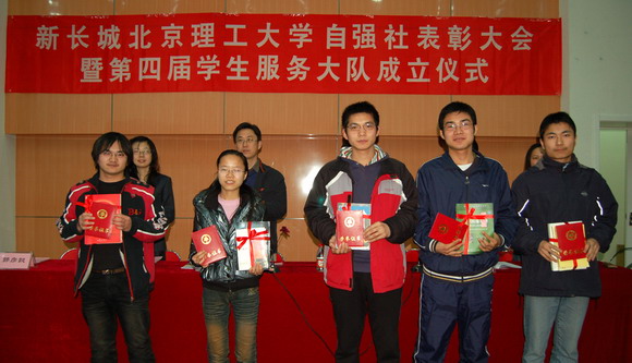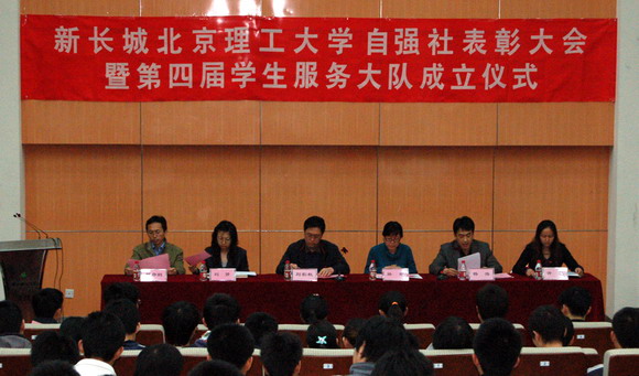 2009年3月25日下午,新长城ob真人自强社表彰大会暨第四届学生服务大队成立仪式在我校良乡校区综合教学楼演艺厅举行。ob真人处处长刘影秋,ob真人处副处长杨海,ob真人处副处长许欣,ob真人处副处长、基础教育学院副书记、副院长郭彦懿,中国国家图书馆业务管理处孙婠,中国国家图书馆保存本书库刘赟出席会议。ob真人处、基础教育学院相关教师,270名2008-2009学年获得资助学生代表参加会议。会议由ob真人处副处长杨海主持。