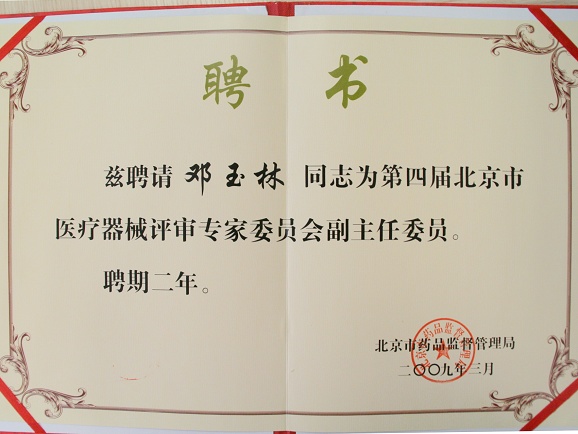 日前,生命学院院长邓玉林教授正式被北京市药品监督管理局聘任为第四届医疗器械评审专家委员会副主任委员,聘期为两年。