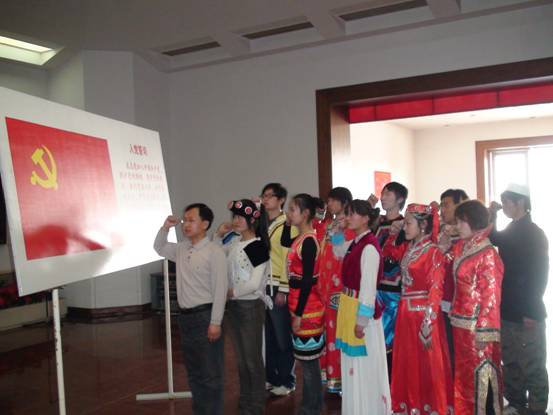在李大钊纪念馆举行了入党宣誓仪式,宣誓仪式由学生党小组组长张立文同志主持并领誓,在李大钊同志的塑像面前,面对鲜红的党旗,所有同志庄严肃立,预备党员进行了庄重的入党宣誓,正式党员也随之一起重温了入党誓词。