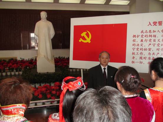 参观学习结束后,李刚书记作了总结。他指出:在我校深入学习实践科学发展观之际,直属党支部经过认真研究做出了组织这次参观学习的决定,体现了直属党支部对学生党员的关心和爱护,体现了对学生党员学习和教育工作的重视。希望同志们要牢记先烈遗志,发扬革命精神和优良传统,在工作和学习中要切实发挥好党员先锋模范带头作用,时时处处体现出共产党员的先进性,学好科学本领,将来为民族的团结,西部的发展,边疆的稳定,祖国的繁荣贡献自己的一份力量。全体党员同志还在革命先驱李大钊同志的塑像前三鞠躬以示缅怀之情,并合影留念。