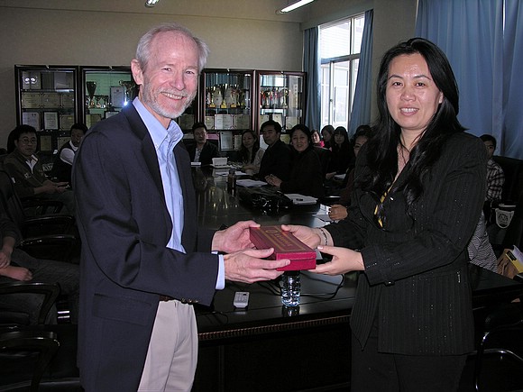 图1何海燕副院长向Patrick McCarthy教授赠送礼物