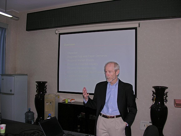 4月16日下午2点在中心教学楼1003室,应管理与经济学院院长魏一鸣教授的邀请,佐治亚理工大学经济学院的首席教授Dr. Patrick McCarthy为我院教师和研究生进行了专题为《Regional Demands for Pulp and Paper Products》的学术报告,此次报告由管理与经济学院应用经济系承办。