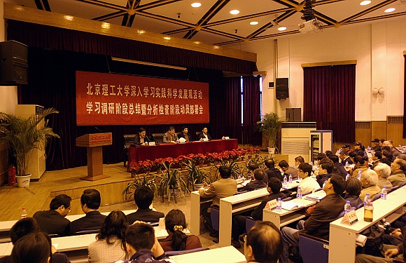 胡海岩校长作了总结讲话。他指出,经过第一阶段的学习实践活动,学校广大党员干部对科学发展观的科学内涵、精神实质和根本要求有了进一步的了解和掌握,认识水平有了新的提高,解放思想有了新的深化,各项工作有了新的推动,取得了明显的阶段性成果,为开展好分析检查阶段工作打下了良好的思想基础和工作基础。分析检查阶段是承前启后、把学习实践活动引向深入的核心阶段,对确保学习实践活动取得实效至关重要,工作中既会涉及领导班子集体又会涉及领导干部个人,既要分析现在又要评价过去,既要总结经验又要吸取教训,涉及面比较广,政策性比较强,必须认真贯彻上级精神,以奋发有为的精神状态和求真务实的工作作风,扎实推进学习实践活动,促进科学发展,不断开创高水平研究型大学建设事业的新局面!
