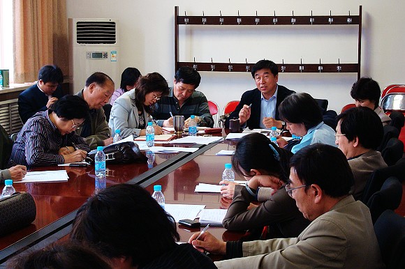 4月29日下午,我校深入学习实践科学发展观活动分析检查阶段工作部署会在主楼四层会议室召开,学校学习实践科学发展观活动办公室成员、督导组成员、各分党委(党总支)、直属党支部负责人参加了会议。会议由党委宣传部部长、深入学习实践科学发展观活动领导小组办公室副主任贺亚兰主持。学校党委副书记、学习实践科学发展观活动领导小组副组长兼办公室主任侯光明对分析检查阶段的总体要求、时间安排、工作任务、重点注意的问题以及切实做好检查督导等工作进行了部署。学校党委书记、学习实践科学发展观活动领导小组组长郭大成做了重要讲话。