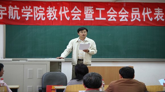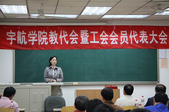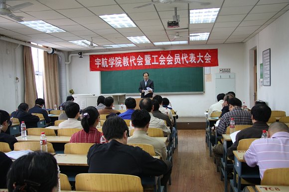 宇航学院于2009年4月28日下午2:00在3号教学楼418教室召开了第一届教代会暨工会会员代表大会,共有32名工会教代会代表参加了会议,校工会王建光副主席参加了会议。