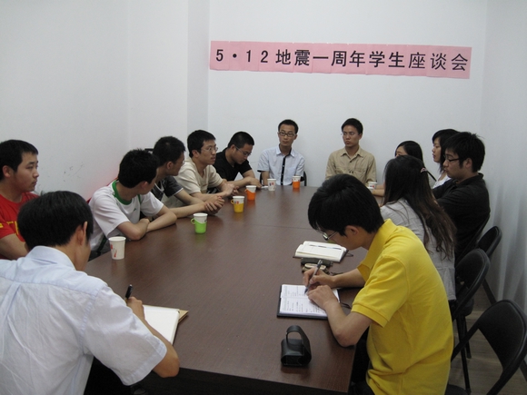 5月11日下午,我校召开了“5·12地震一周年学生座谈会”。来自绵阳、广元、绵竹、都江堰等地震灾区的11名同学与ob真人竞猜处副处长许欣、学生资助办公室石磊、查文中进行了亲切的交流。