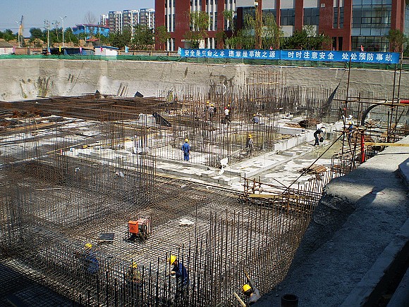 良乡校区1号公寓楼于2009年3月31日开工,中建三局负责施工总承包,北京建工京精大房监理公司监理,目前正在进行地下室底板的钢筋绑扎、混凝土浇注工作。胡校长了解了工程的进度安排、质量控制、当前材料市场价格,并指出1号公寓楼的建设意义重大,它的建成将进一步完善校区的功能设置,教职工非常关注此项工程的建设,一定要严格施工管理、保证精品工程。