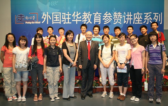 “走向世界”主题系列活动是贯彻和落实学校党政领导推进学校国际化进程、繁荣学校校园文化、为学生服务的一项重要举措。“外国驻华教育参赞讲座系列”活动是我校国际交流合作处继2008年“澳大利亚大学月”和“美国文化月”活动后于今年推出的又一项高层次的教育文化交流活动。