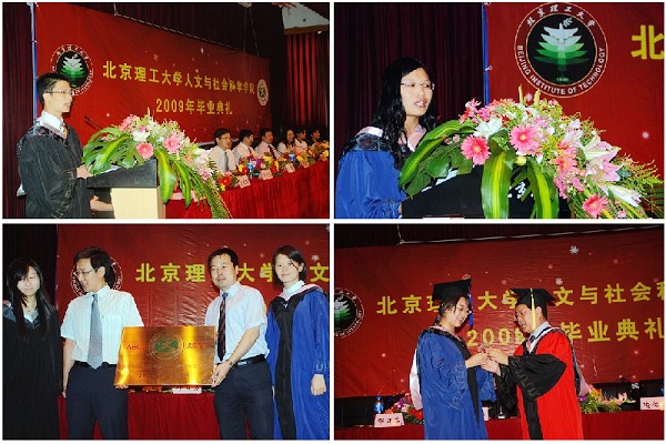 副院长贾利军老师(左上)宣读了2009届毕业生名单及学位授予情况;党委副书记、副院长高伟涛老师(右上)宣读了2009届优秀毕业生、优秀毕业研究生名单;副院长喻佑斌老师(左下)宣读了2009年德育答辩毕业生优秀论文名单;教师代表李林英老师(右下)向所有毕业生送上美好的祝愿。