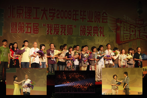 毕业生晚会现场,随着主持人的介绍,第五届“我爱我师”——我心目中最优秀的教师评选结果依次揭晓。来自各个学院的毕业生代表满怀感恩之情为陈曦、张忠廉、王卫江、杜慧茜、王美玲、李凤霞、赵丰年、程杞元、苟秉聪、郭德忠等十位老师送上了鲜花和奖杯。点点烛光和持续的掌声是同学们对老师的最好祝福。自第五届“我爱我师”评选活动启动以来,得到了校、院各级领导及全体同学的大力支持,近8000名同学参与了“我爱我师”的评选,同学们亲手选出了自己心目中最优秀的教师。在评选活动中,校学生会在两校区同时设置了爱师墙、优秀教师事迹展等环节,进一步增进师生了解,搭建师生沟通的桥梁。