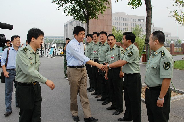 9月24日上午,校党委郭大成书记在学校办公室副主任金军、基础教育学院副书记、副院长高伟涛等陪同下到良乡校区检查我校2009年军训工作开展情况,并看望了军训带队干部和参训学员。