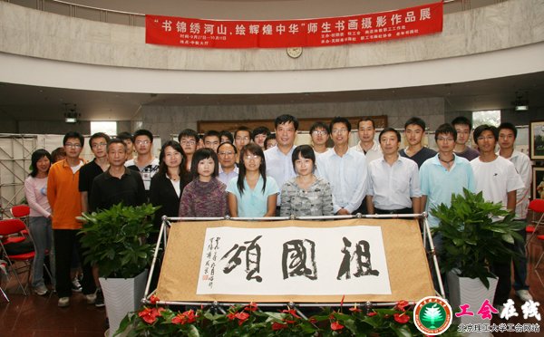 新中国60周年华诞的日子即将到来,为迎接这一辉煌盛大的时刻,抒发我校师生的爱国热情,体现我校浓厚的文化氛围,由校团委、校工会和离退休教职工工作处联合主办,无阳斋书画社、职工书画协会和老年书画社联袂打造的“书锦绣河山,绘辉煌中华”大型书画摄影展于9月27日在中心教学楼大厅揭幕。这次展览共展出无阳斋社员新作40余幅,校工会成员和离退休职工的书画、摄影作品20余幅,从多角度表达了我校师生庆祝建国60周年的喜悦心情。这些作品或描绘祖国的大好山河,或讴歌祖国的伟大历程,艺术性高,表现力强,是我校优良文化氛围的体现。
