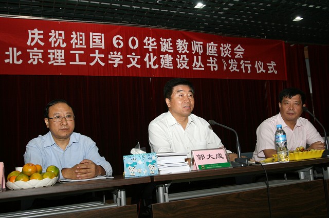 郭大成首先代表学校党委和行政向各位教师代表表达了节日的问候,指出我校的发展成就与祖国发展同步,主要集中于建国60年,不仅人才培养、科学研究、社会服务等各方面都取得了好的成就,而且培养出的很多学生为经济社会建设和国防科技工业发展作出了卓越贡献,成为ob真人的骄傲。