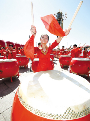 二是演唱演奏队伍的整体规模为历次国庆之最。这次由1300多人组成联合军乐团,由中央音乐学院、中国音乐学院和首都各大院校艺术系的学生组成2100人的成人合唱团,由北京金帆、银帆两个童声合唱团组成300人的童声合唱团,由中央音乐学院、中国音乐学院学生等组成130人的民族打击乐团。