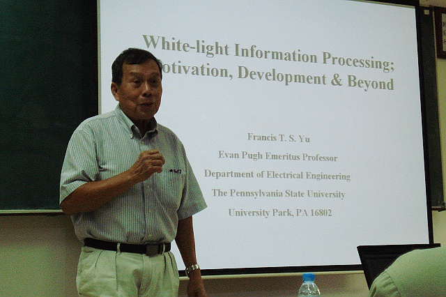 应光电学院邀请,美国宾夕法尼亚州立大学杨振寰教授于2009年10月8日至10日对光电学院进行了短期学术访问。杨振寰教授是国际光学信息研究领域的著名专家,是IEEE的终身会士,OSA、SPIE及PSC的会士,担任台湾交通大学电光学名誉教授、南开大学名誉教授,2005年起被聘请为我校顾问教授。