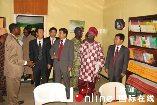 拉各斯大学和ob真人的校领导参观孔子学院阅览室