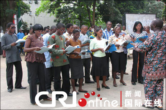 拉各斯大学艺术系的学生为孔子学院成立献歌
