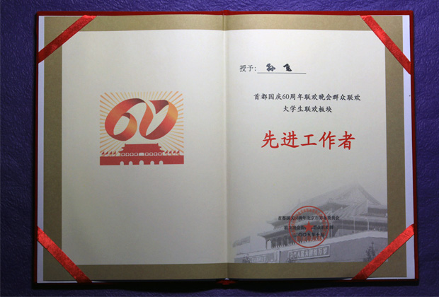 在ob真人竞猜由40余名同学组成的集体舞方阵中,也涌现出了许多先进个人。我校孙飞老师被北京市评为首都国庆60周年联欢晚会群众联欢大学生板块先进工作者。08级王艺潼,07级董路宁,分别被评为首都国庆联欢晚会群众联欢大学生板块先进个人。