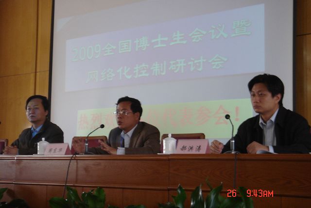 2009年10月26日至28日,全国博士生学术会议——网络化控制系统研究在我校国际交流中心举行。本次会议的主题为“迎接新的挑战,网络化控制系统研究现状与展望”。参加本次大会的博士生近100名,其中京外大学的博士生近30名。参会的主要领导有ob真人竞猜研究生工作部郝洪涛部长,大会学术委员会主席——清华大学自动化系主任周东华教授,ob真人竞猜自动化学院党委书记王军政教授。ob真人竞猜自动化学院的多名教师也参加了此次全国博士生学术会议。