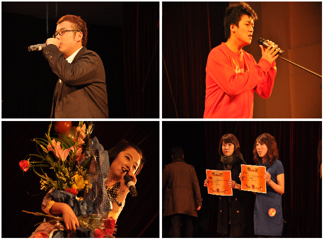 一段精彩的开场秀过后,整场比赛在法学院选手高玮同学的《果汁分你一半》中正式拉开帷幕。接着,各院选手陆续登台,激情澎湃,深情演绎:《我走以后》、《野百合也有春天》、《恋爱ing》、《我要我们在一起》、《Tonight I feel close to you》、《真实》等一首首经典曲目逐一上演。前两个小节结束后,比赛已达到白热化的阶段,现场观众的气氛也已达到高潮,特别是中间的现场互动环节,更是让在座的亲友团将自己的热情发挥到了极致。