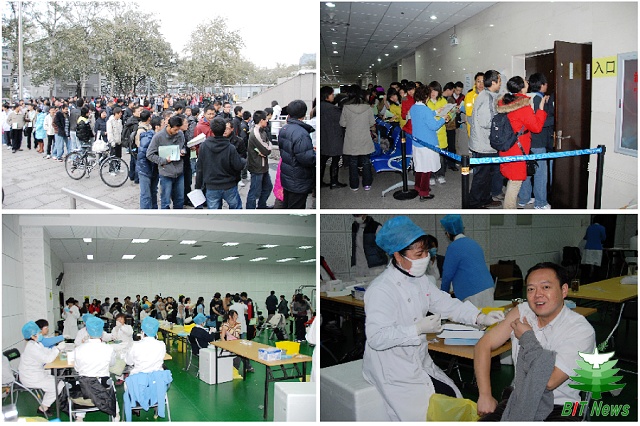 按照北京市委、政府的部署和卫生部门的有关要求,校医院从11月10日起开始组织为中关村校区的师生接种甲型H1N1流感疫苗。作为防控甲型H1N1流感疫情最有效的措施,校医院高度重视此次接种工作,精心组织安排,严格按照卫生部门的要求,从人员的配置、场地的选择、器材的准备等方方面面做了大量工作。根据工作安排,本次接种工作持续3天。