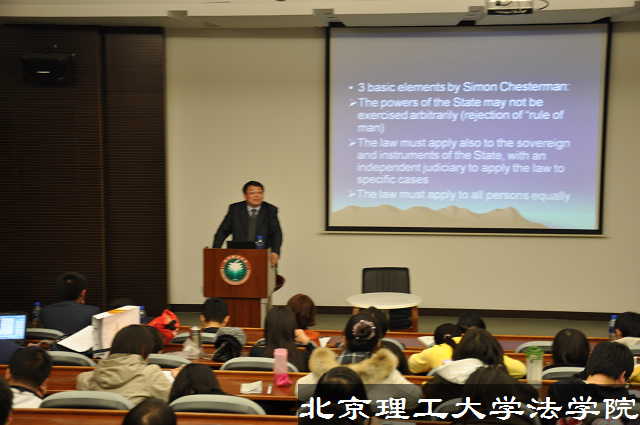 讲座中,曾令良教授首先从历史渊源、要素内容、特征性质三方面详细阐释了国际法治,分析法治对于国家权力行使、实体司法体系、法律适用的要求。随后,曾教授以联合国、欧盟、WTO为例,主要从法治行动、国际争端解决机制等方面,具体地分析三个国际组织在其内部、成员国之间以及第三方中的国际、国内法治。讲座结束后,同学们就国际习惯在信息社会的确认、国家责任承担、国内法例外于条约必须遵守等问题向曾令良教授请教。其深厚的学识、独到的视点、深刻的见解博得在场师生的热烈掌声。