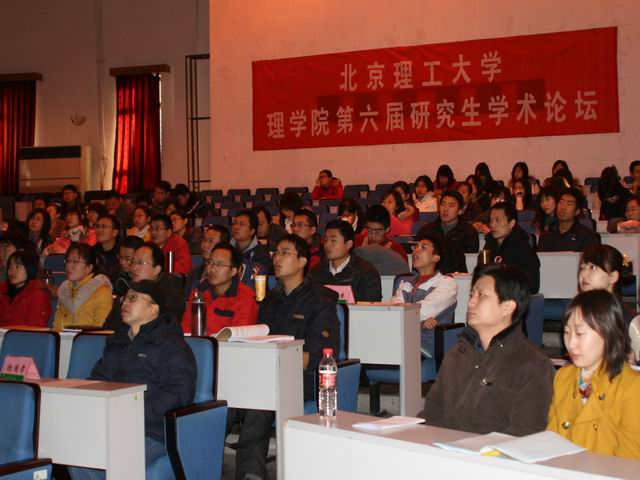 研究生工作部郝洪涛部长为本届学术论坛致开幕词,他代表研究生院对理学院第六届研究生学术论坛开幕表示热烈的祝贺。他指出研究生学术论坛是我校研究生教育创新工程的重点项目之一,也是活跃校园学术气氛,加强研究生学术交流,培养和提高研究生撰写研究报告、表达学术思想和学术成果的有效方式。论坛将原本限于学科组内部的交流扩大至全学院乃至全校,创造了宽松良好的科研创新氛围,为交叉学科、交叉课题的发展起到了积极的促进作用。希望理学院研究生能够把握机遇,通过学术论坛这一平台,更好地增强创新意识、弘扬创新精神,培养创新思维,提升创新能力,提高学术水平、促进学术交流、繁荣学术氛围。