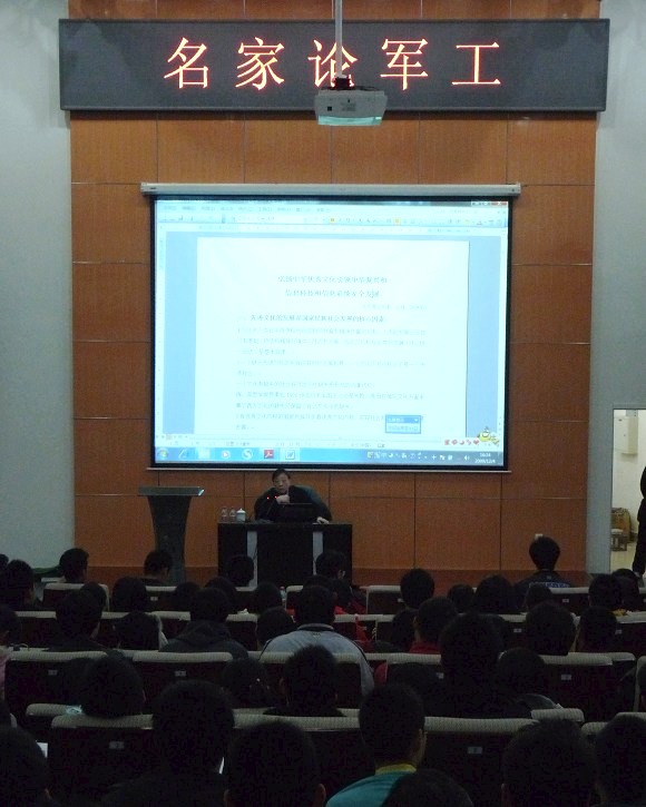 王院士为大家讲述了信息对抗技术的发展及应用,以及信息对抗技术与中国传统文化的内在联系。讲座过程中王院士还分析了我国优秀的传统文化,并且就中日文化进行了一定的对比,突出了我们国家传统文化的优越性,强调了优秀的传统文化是信息科技发展的基本要素。王院士希望当代大学生能够继承和发扬优秀的传统文化,积极投身于国防事业,为祖国做贡献。也希望同学们能好好珍惜在基础教育学院学习两年时间,夯实基础,为将来的专业学习做好准备。 讲座过程中,同学们认真听讲,积极思考,每当院士讲到精彩之处,会场都爆发出阵阵热烈的掌声。