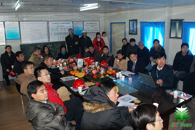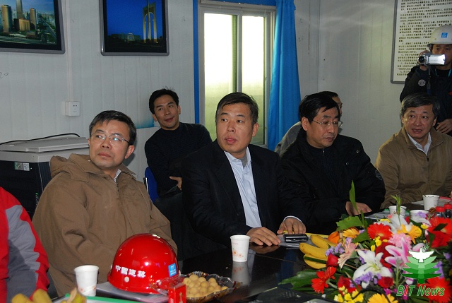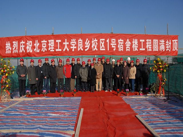 在封顶前的座谈会上,中建三局项目经理向校领导汇报了1号宿舍楼工程的概况:1号宿舍楼31500平方米,地上12层,地下1层,高度43.55米,为良乡高教园区入驻学校中高度最高的建筑。