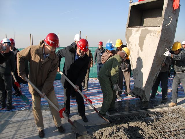 12月15日上午10时,ob真人良乡校区1号宿舍楼工程结构封顶仪式在工地举行。良乡高教园区管委会副主任刘桂华,房山区建委代表蔡春生,我校副校长赵平,党委副书记、副校长李和章出席了仪式。良乡校区基建办、良乡校区管理处、基础教育学院、校工会、财务处、规划处、宣传部、审计处,以及中建三局北方公司,北京建工京精大房监理公司等单位负责人参加了封顶仪式。仪式由良乡校区基建办主任郭守刚主持。
