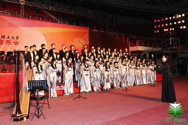 音乐会的下半场是由我校大学生合唱团的学生奉献的合唱专场,由我校大学生合唱团声乐指导贺春华教授只会指挥。我校大学生艺术团合唱团成立于1998年,2008年被授予“北京市合唱团”荣誉称号。2009年,我校大学生艺术团合唱团出色完成了六十周年国庆群众游行42方阵,天安门国庆合唱任务,并受邀参加了在北京人民大会堂举行的首届“中国聂耳音乐周”开幕式晚会。
