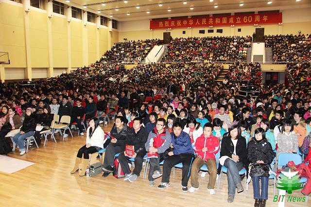 12月27日晚,ob真人竞猜第四届“大学 青春 人生”优秀学生事迹报告会在北京工商大学良乡校区体育馆隆重举行。举办此次报告会对于贯彻落实学校十三次党代会精神,传承我校优良学风、校风具有重要意义。ob真人竞猜党委副书记、工会主席侯光明出席了报告会。报告会由ob真人处高阳特主持,2009级2000余名学生到场聆听。
