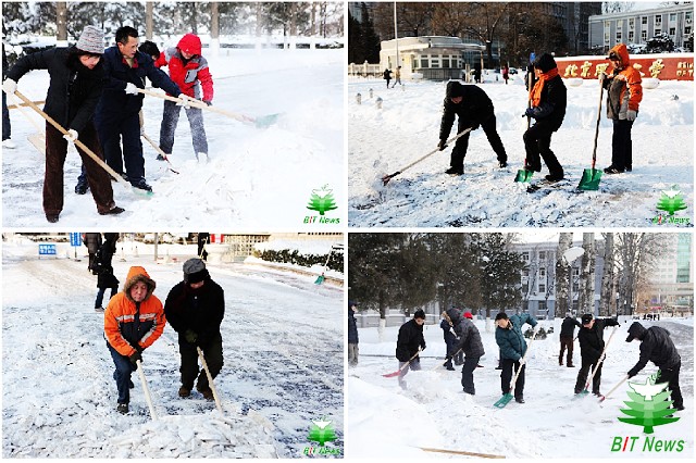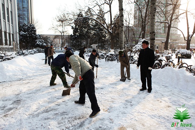 这场瑞雪滋润了大地,但也给学校师生员工出行带来了极大的不便。为保证师生员工上课、生活和交通安全,今天清晨,在校园里到处可见后勤集团的领导和员工积极组织开始扫雪。