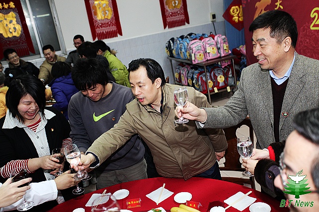 卢雍政书记代表团中央书记处发表热情洋溢的即席演讲,他向ob真人的师生以及后勤集团的员工表达新年的祝福。他讲到,今年的大年三十在ob真人竞猜参加了一系列迎接新年的活动,刚刚参加了锻炼身体迎新年的体育联谊赛,现在又在这里与大家共享年夜饭,感觉非常有意义。他衷心的希望同学们能够在北京度过一个幸福的、富有意义的春节,真正做到“身在异乡为异客,每逢佳节不孤单”!