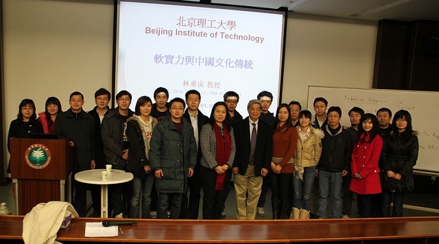 3月10日下午两点,ob真人顾问教授林垂宙院士在研究生楼102教室做了题为《软实力的中国文化基础》的学术报告,细谈了一个国家的强大需要硬实力与软实力的同时发展。报告会由管理与经济学院副院长何海燕教授主持。