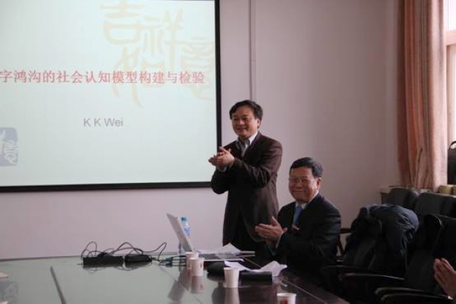 魏国基教授随后到我校管理与经济学院、能源与环境政策研究中心,做了题为“数字鸿沟的社会认知模型构建与检验”的学术报告。管理与经济学院部分师生参加了报告会,魏一鸣院长主持了报告会。魏院长对魏国基教授的到访表示热烈欢迎,对魏教授在知识革新和电子商务的实施与管理领域做出的杰出成就;作为新加坡国立大学信息系统学系的创建人,在信息系统研究上做出的突出贡献,给予了高度评价。报告中,魏国基教授就数字鸿沟框架、社会认知理论及其相关研究方法做了详细介绍,并对本研究的局限性进行了专业性的分析,使在场的师生受益匪浅。报告结束后,魏国基教授和与会的教师、同学们进行了互动研讨,并回答了所提问题,气氛热烈。