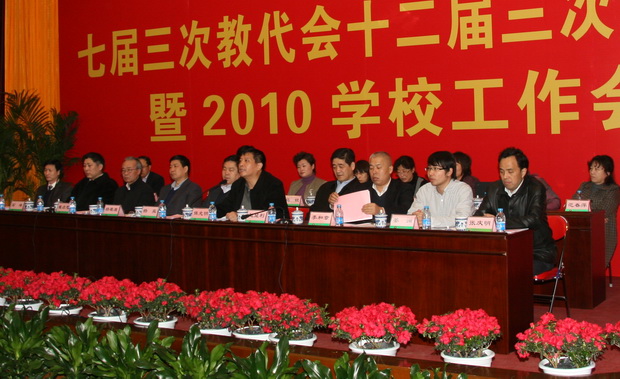 3月16日下午,我校七届三次教代会十二届三次工代会暨2010年学校工作会议在中心教学楼一层报告厅举行闭幕式。副校长、校教代会常设主席团副主席杨宾,校党委副书记、校教代会常设主席团主席、校工会主席侯光明,校纪委书记杨蜀康,副校长赵显利,校党委副书记、副校长李和章出席了大会;全体教代会、工代会代表参加了会议。大会由侯光明主持。