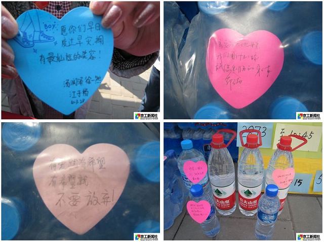 截至中午12时,厂家运送的500箱水已全部被认捐。但同学们热情依旧不减,有的到学生服务中心买来整箱矿泉水捐出,还有的同学默默来到捐款箱前,放下钱,写下一句句情真意切的寄语。他们写道:“希望你们早日度过旱灾,拥有最灿烂的笑容!”“青山绿水会重现,心怀希望,灾难总会过去!”“亲爱的大地母亲,我们拿什么舔舐您布满创伤的身体?”“有爱就有希望,有希望就不要放弃!”现场的工作人员中亦有来自云南的同学,他们看到大家为自己的家乡所做出的努力,落下了感动的泪水。