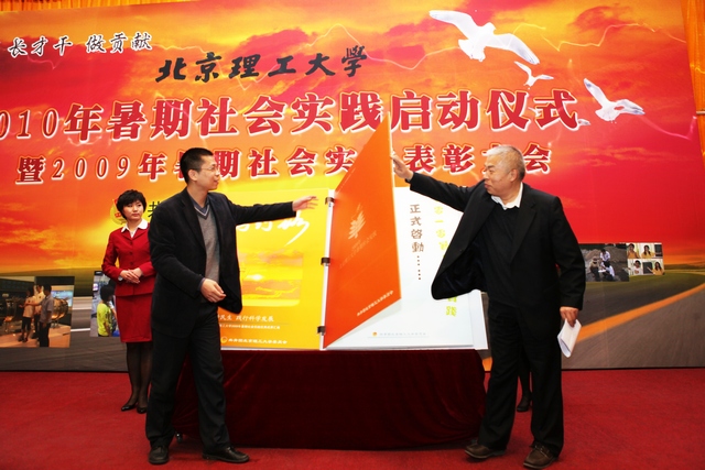 随后,校党委副书记、副校长李和章在校团委书记徐强陪同下翻开了象征2010年暑期社会实践活动的巨大书页,向同学们发出了“期待你的参与”的亲切邀请,标志着我校2010年暑期社会实践活动正式启动。随后,李和章发表了热情洋溢的讲话。他就我校学生暑期社会实践工作进行了点评,充分肯定了2009年社会实践所取得的成绩,并感谢各位指导老师与学生的热情参与。讲话中指出大学生要正确认识社会实践,在其中学知识,通过实践检验知识,勤走、勤听、勤看、勤想。同时李副书记也对2010年的暑期社会实践工作提出了几点建议,建议同学们多走出教室,走出校园,勤于动手,肯于付出,充实自己,服务社会;希望同学们充分发挥自己的主观能动性,将一个当代大学生应有的朝气、才华带入到整个社会实践活动中。