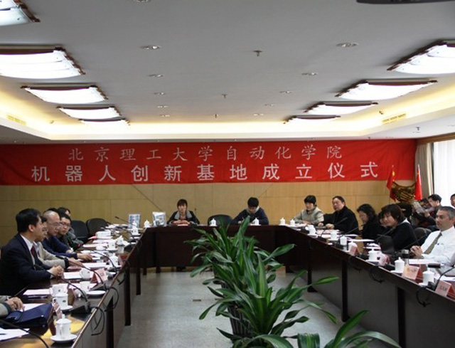 4月9日上午,自动化学院机器人创新基地成立仪式在我校国际教育交流中心举行。自动化学院党委书记王军政,副院长张百海,党委副书记、副院长邹凌,院长助理周克良,美国Parallax公司教育部主任Aristides Alvarez,台湾普特企业公司(Playrobot)经理王国光,国昱睿智机电有限公司总经理殷八斤等出席了仪式。同时,来自北京交通大学、北京科技大学等兄弟高校的部分老师和同学也应邀参加了本次仪式。