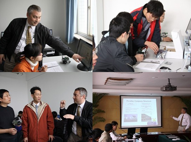 Aristides Alvarez先生和王国光先生与到场师生进行了技术交流。分别就Parallax产品在教学、工业及在台湾地区的开发应用情况作了介绍,各高校的老师同学们进行了积极的讨论。