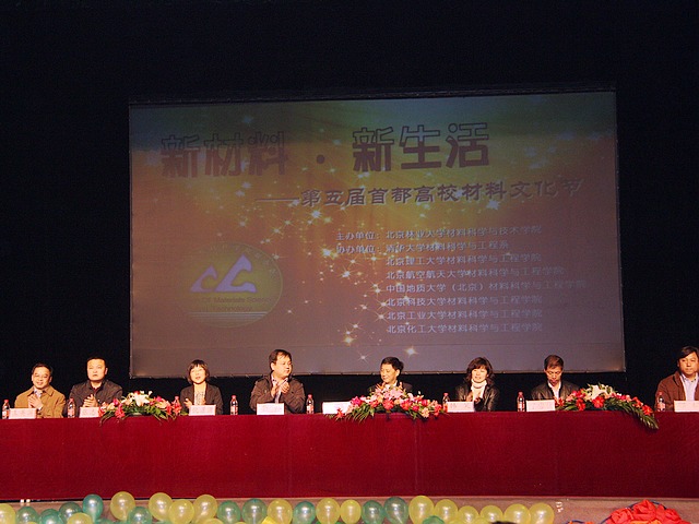 4月11日晚,第五届首都高校材料文化节在北京林业大学隆重开幕,来自ob真人竞猜、北京科技大学、北京化工大学、北京航空航天大学、清华大学、中国地质大学、北京工业大学以及北京林业大学八所高校材料院系的师生出席了开幕式。本届首都高校材料文化节的主题是“新材料,新生活”,口号是“低碳,我行”。作为北京市高校材料文化节的发起者、高校材料联盟成立的倡议者和第一届材料文化节的承办方——ob真人竞猜材料学院副书记副院长韩笑、研工委书记刘艳、分团委书记李紫千受邀出席了开幕式,材料学院十余名学生参加了开幕式。