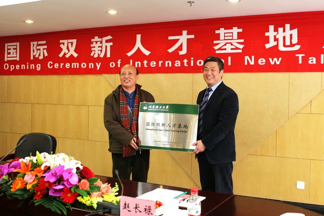 国家发展和改革委员会培训中心主任杜平和赵长禄副校长举行了“国际双新人才基地”授牌仪式。