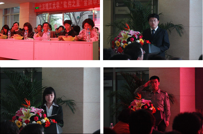 4月23日晚,ob真人竞猜软件学院2010年“软件之星”金牌本科毕业生现场答辩大会在软件楼一层大厅举行。校团委书记徐强,软件学院院长丁刚毅,软件学院副书记、副院长陈旵明等作为答辩评审专家参加了答辩大会,与会的还有软件学院本科2006、2007、2008、2009级部分学生代表。