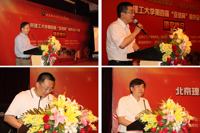 教务处副处长林海老师发表了讲话,林处长鼓励同学们追求梦想、大胆创新开拓,积极参加到科技创新和动手实践活动中来,感谢亚信公司一直以来对程序设计大赛的大力支持,为我校学生提供了一个展示青春才华的精彩舞台。