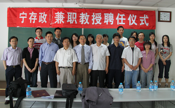 受聘仪式由魏名山主持。邹炳锁介绍了宁存政教授的学术经历:宁存政教授分别于1982年、1985年获中国西北大学物理系学士学位和理学硕士学位,于1991获德国斯图加特大学理学博士学位。1994-1995年,在亚利桑那大学做博士后,并于1996-1997年成为亚利桑那大学研究助理教授。1997-2006年是美国国家航天航空总署AMES研究中心资深科学家,其中2000-2004年担任计算纳米科学小组负责人及项目经理,2004-2007年担任纳米技术项目负责人。2006年至今,亚利桑那州立大学电子学教授。主要从事半导体纳米材料、纳米等离子体学等方面的研究工作。研究兴趣包括半导体纳米线的生长,表征,物理及其光电子方面的应用(包括激光,探测器,发光二极管,及太阳能光伏等器件);纳米等离子体学及纳米半导体光子学;半导体光电子物理,器件物理,微观理论及多体相互作用,半导体纳米结构的电学及光学性质。发表上百篇高水平论文,并多次主持国际会议。