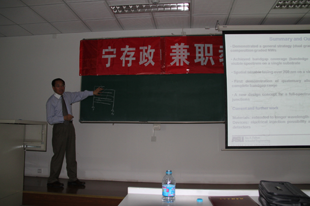 随后宁存政教授作了题为“合金纳米线及其在全色光电子技术中的应用”的学术报告,并与师生进行了热烈的讨论。