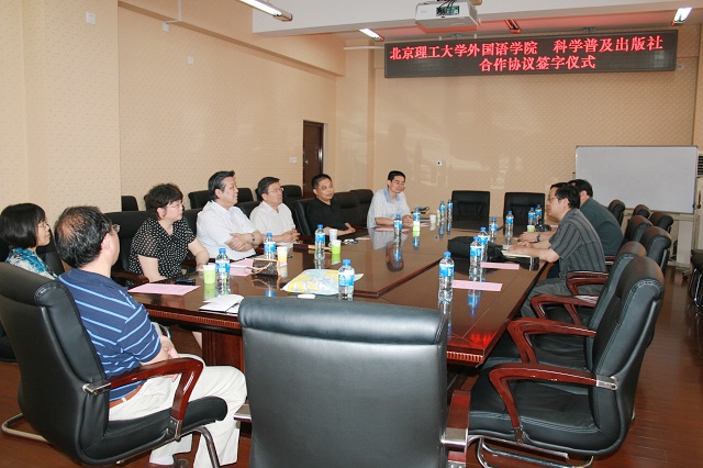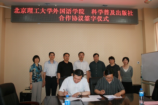 首先,赵平介绍了学校近期的发展情况。他说,在70周年校庆之际,学校尤其理工科取得了很大的发展。文科相对来说略显薄弱。外国语学院与科学普及出版社签订校外实习基地合作协议,对申请翻译硕士专业学位具有重要意义,也是培养应用型人才的实践环节,希望这种合作实现双赢。